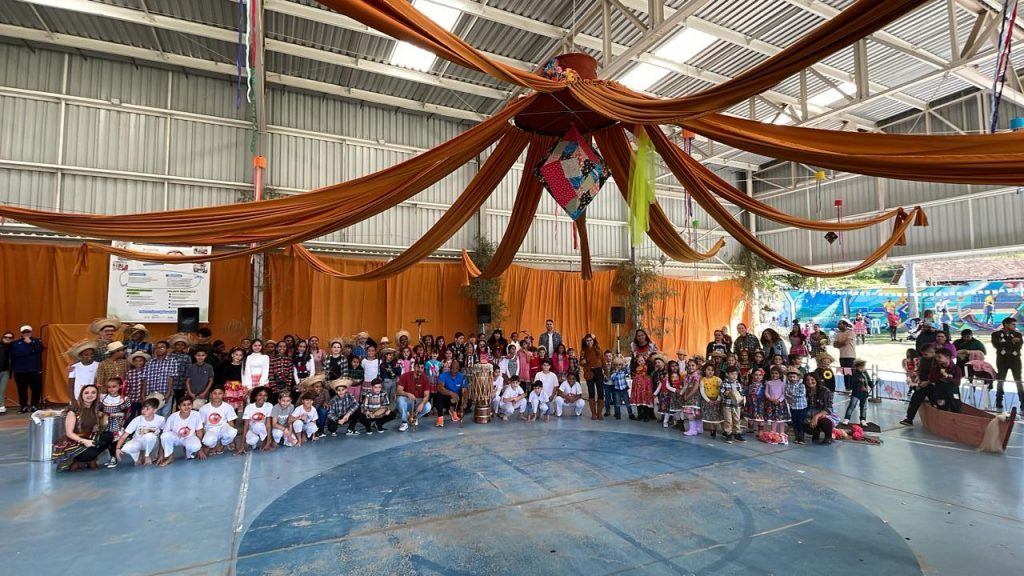 Um dos pontos altos da festa foi a apresentação integrada das oficinas de Capoeira, Dança e Música do projeto Oficinas de Cultura e Arte Transformando Realidades. A apresentação “Entre o mar e a lavoura – colheita de cultura” foi realizada pelas crianças da Educação Infantil e do Serviço de Convivência e Fortalecimento de Vínculos.